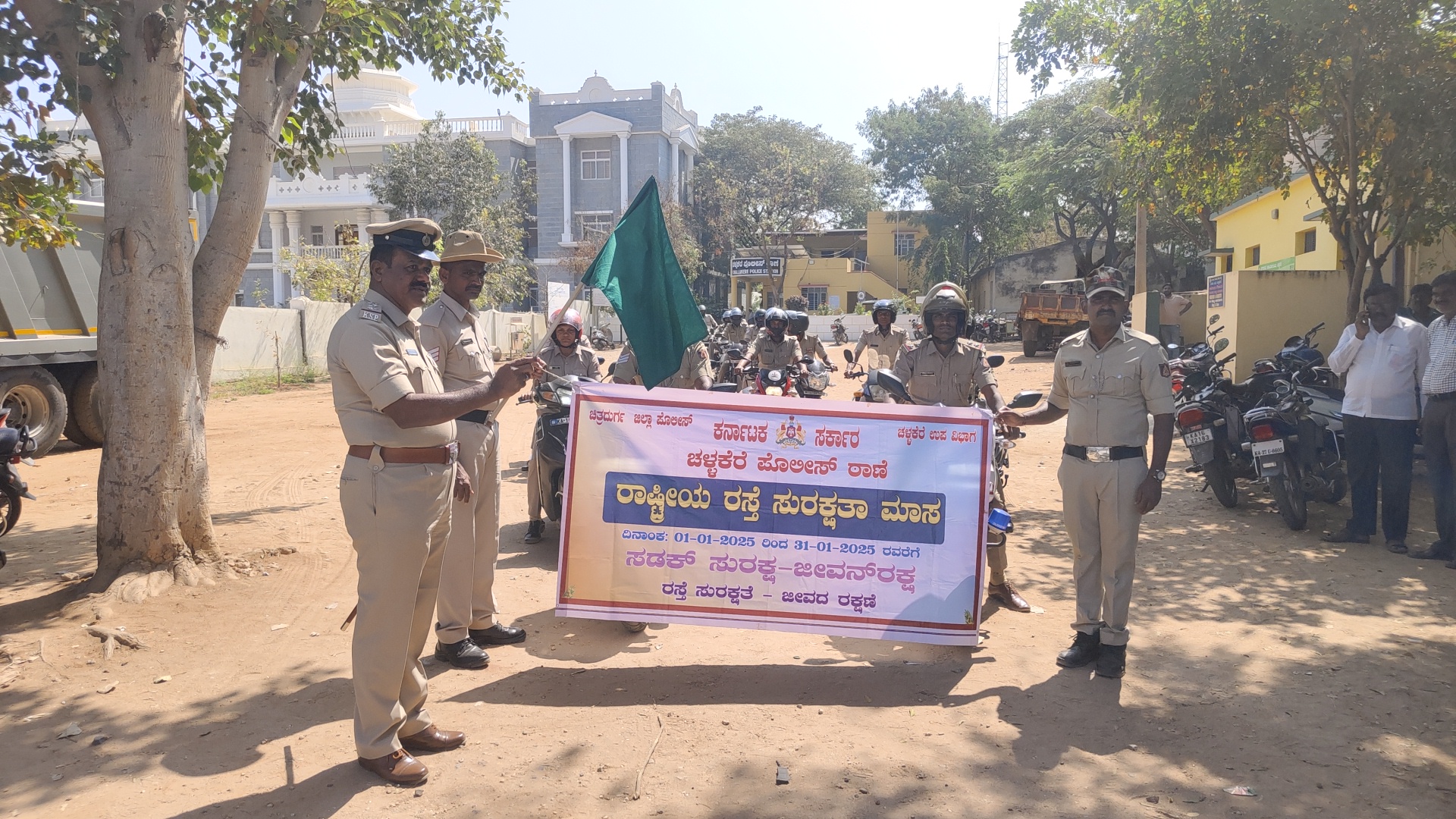 ರಾಷ್ಟ್ರೀಯ ರಸ್ತೆ ಸುರಕ್ಷತಾ ಅಂಗವಾಗಿ ಚಳ್ಳಕೆರೆ ನಗರದ ಪೊಲೀಸ್ ಠಾಣೆ ವತಿಯಿಂದ ರಸ್ತೆ ಸುರಕ್ಷತಾ ಹೆಲ್ಮೆಟ್ ಜಾಗೃತಿ ಅಭಿಯಾನವನ್ನು ನಡೆಸಿದರು.