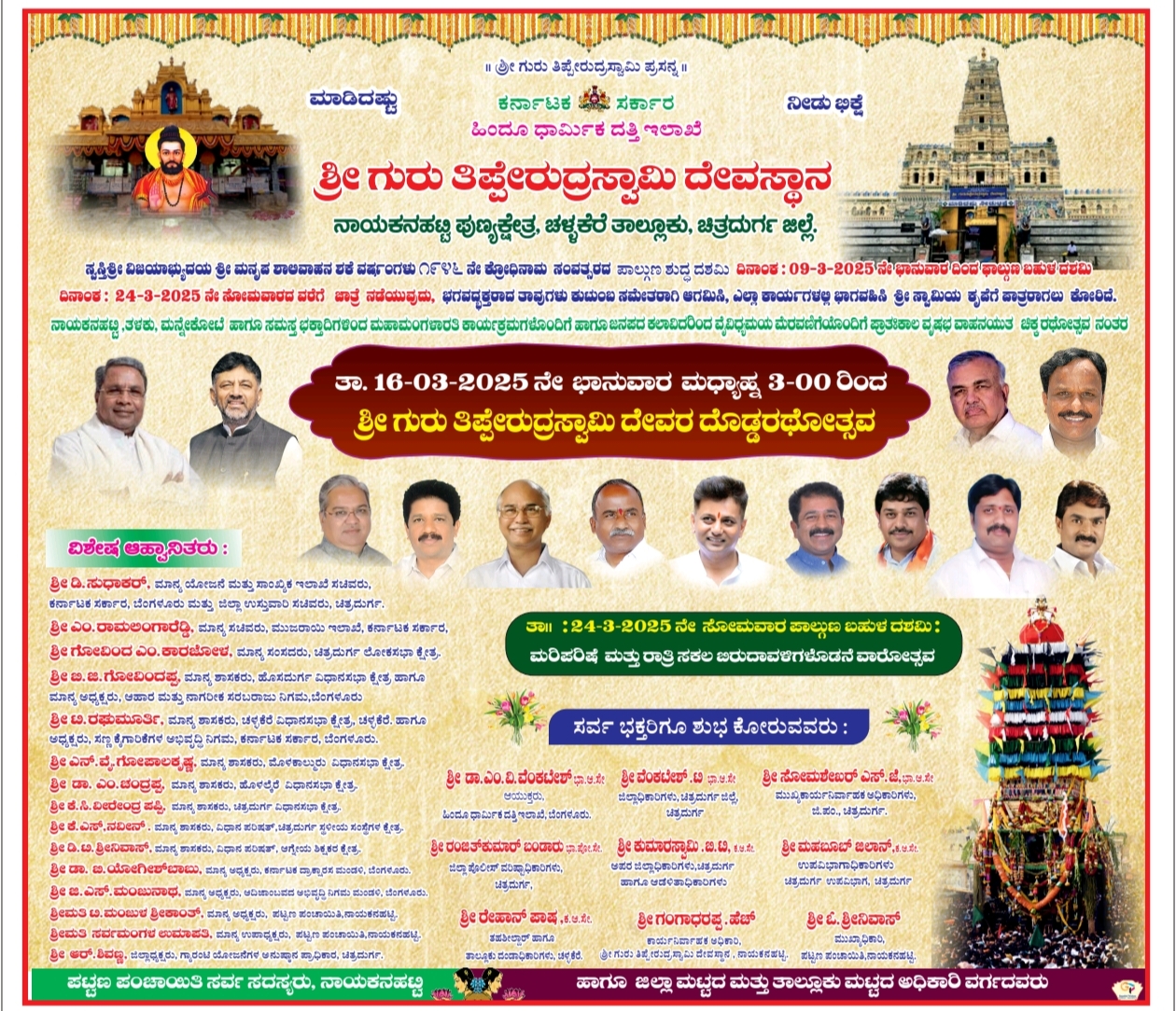 — ಹೆಚ್.ಗಂಗಾಧರಪ್ಪ, ಇಓ.ಶ್ರೀ ಗುರುತಿಪ್ಪೆರುದ್ರಸ್ವಾಮಿ ದೇವಾಸ್ಥಾನ ನಾಯಕನಹಟ್ಟಿ