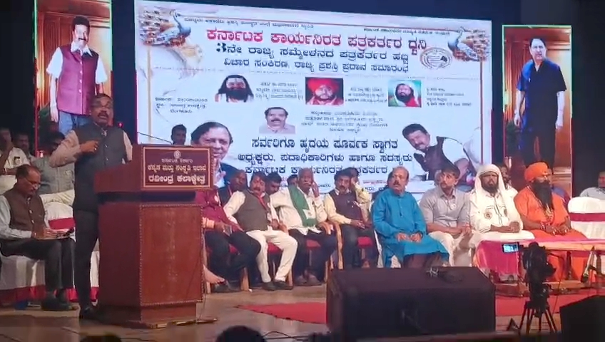 ರಾಜ್ಯ ಮಟ್ಟದ ಪತ್ರಕರ್ತರ ಸಮ್ಮೇಳನದಲ್ಲಿ ಕರ್ನಾಟಕ ಮಾಹಿತಿ ಹಕ್ಕು ಆಯೋಗದ ಆಯುಕ್ತರಾದ ರುದ್ರಣ್ಣ ಹರ್ತಿಕೋಟೆ ಅವರು ಮಾತನಾಡಿದರು.