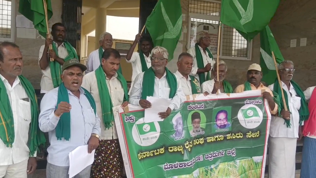 ತಾಲೂಕಿನ ಮೊಳಕಾಲ್ಮೂರು ತಾಲೂಕು ಕಚೇರಿ ಮುಂಭಾಗ ಪ್ರತಿಪಟಿಸಿದ ಕರ್ನಾಟಕ ರಾಜ್ಯ ರೈತ ಸಂಘ ಹಾಗೂ ಹಸಿರು ಸೇನೆ ಪದಾಧಿಕಾರಿ ಬೇಡರೆಡ್ಡಿಹಳ್ಳಿ‌ಬಸವರೆಡ್ಡಿ ಹಾಗೂ ರೈತ ಸಂಘ, ರೈತರ ನೋವಿಗೆ, ಸಂಕಷ್ಟಕ್ಕೆ ಧಾವಿಸದೆ ಇರುವಂತಹ ಕೃಷಿ ಜಂಟಿ ನಿರ್ದೇಶಕ ರೈತರಿಗೆ ಅಪಮಾನ ಮಾಡಿ ನಿಂದಿಸಿದ್ದಾರೆ, ಇಂಥ ಅಧಿಕಾರಿಗಳನ್ನು ಸರ್ಕಾರ ಈ ಕೂಡಲೇ ಅಮಾನತು ಮಾಡಿ ಆದೇಶ ಹೊರಡಿಸಬೇಕು ಎಂದು ಆಕ್ರೋಶ ವ್ಯಕ್ತಪಡಿಸಿದರು.