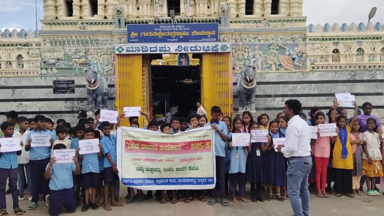 ನಾಯಕನಹಟ್ಟಿ:: ಪಟ್ಟಣದ ಶಾಲೆ ವಿದ್ಯಾರ್ಥಿಗಳು ಪಟ್ಟಣದ ಪ್ರಮುಖ ಬೀದಿಗಳಲ್ಲಿ ಸೇರಿಸಿ ಸೇರಿಸಿ ಶಾಲೆಗೆ ಸೇರಿಸಿ ಎಂಬ ಘೋಷ ವಾಕ್ಯದೊಂದಿಗೆ ವಿಶೇಷ ದಾಖಲಾತಿ ಆಂದೋಲನ 2025 – 26 ನೇ ಸಾಲಿನ ಶೈಕ್ಷಣಿಕ ವರ್ಷದ ಪ್ರಯುಕ್ತ ಪಟ್ಟಣದಲ್ಲಿ ಜಾಗೃತಿ ಮೂಡಿಸಲಾಯಿತು .