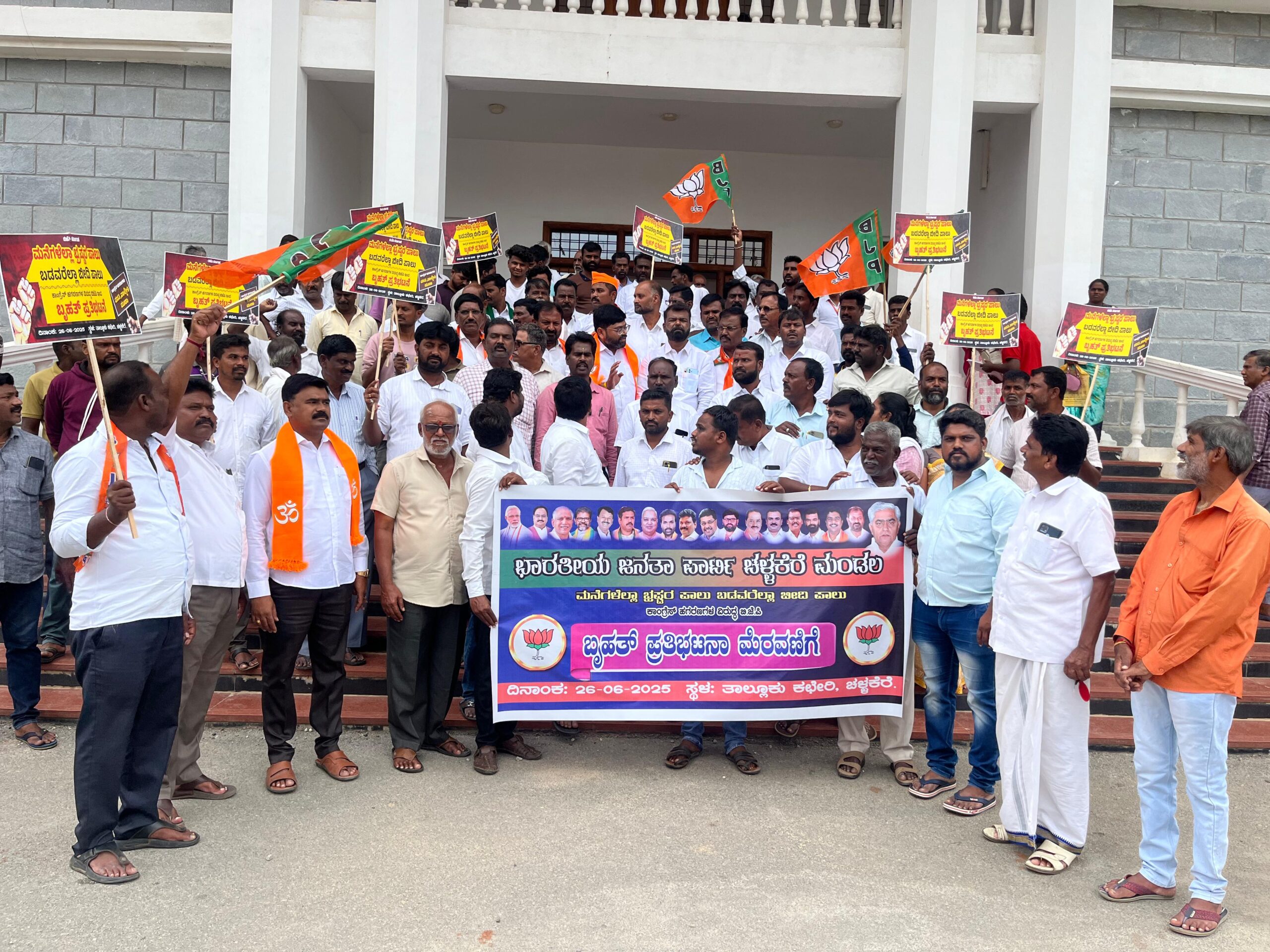 ಚಳ್ಳಕೆರೆ ಮಂಡಲದ ವತಿಯಿಂದ ಕಾಂಗ್ರೆಸ್ ಹಗರಣಗಳ ವಿರುದ್ಧ ಬೃಹತ್ ಪ್ರತಿಭಟನೆ ನಡೆಸಲಾಯಿತು.