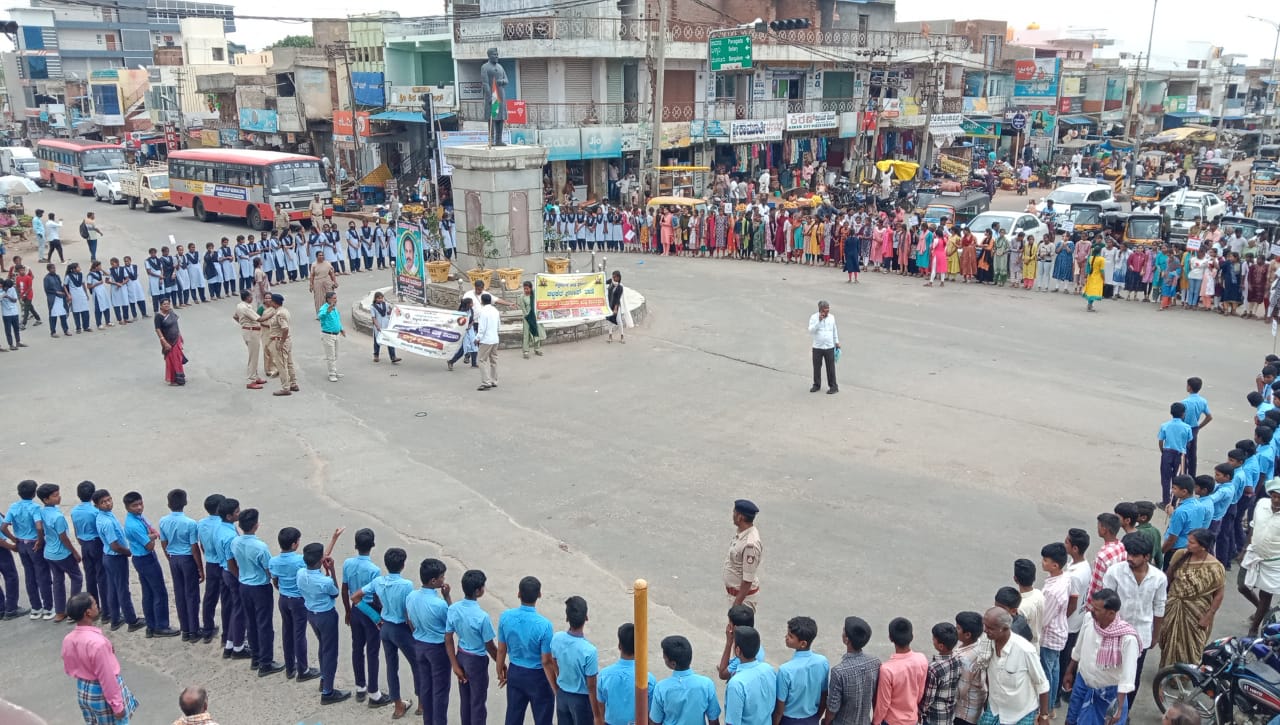 ನಂತರ ನೆಹರು ವೃತ್ತದಲ್ಲಿ ಮಾನವ ಸರಪಳಿ ನಿರ್ಮಿಸಿ ಜಾಗೃತಿ ಮೂಡಿಸಿ ನಂತರ ಮಾತನಾಡಿದ ಡಿವೈ ಎಸ್ಪಿ ಟಿಬಿ. ರಾಜಣ್ಣ.