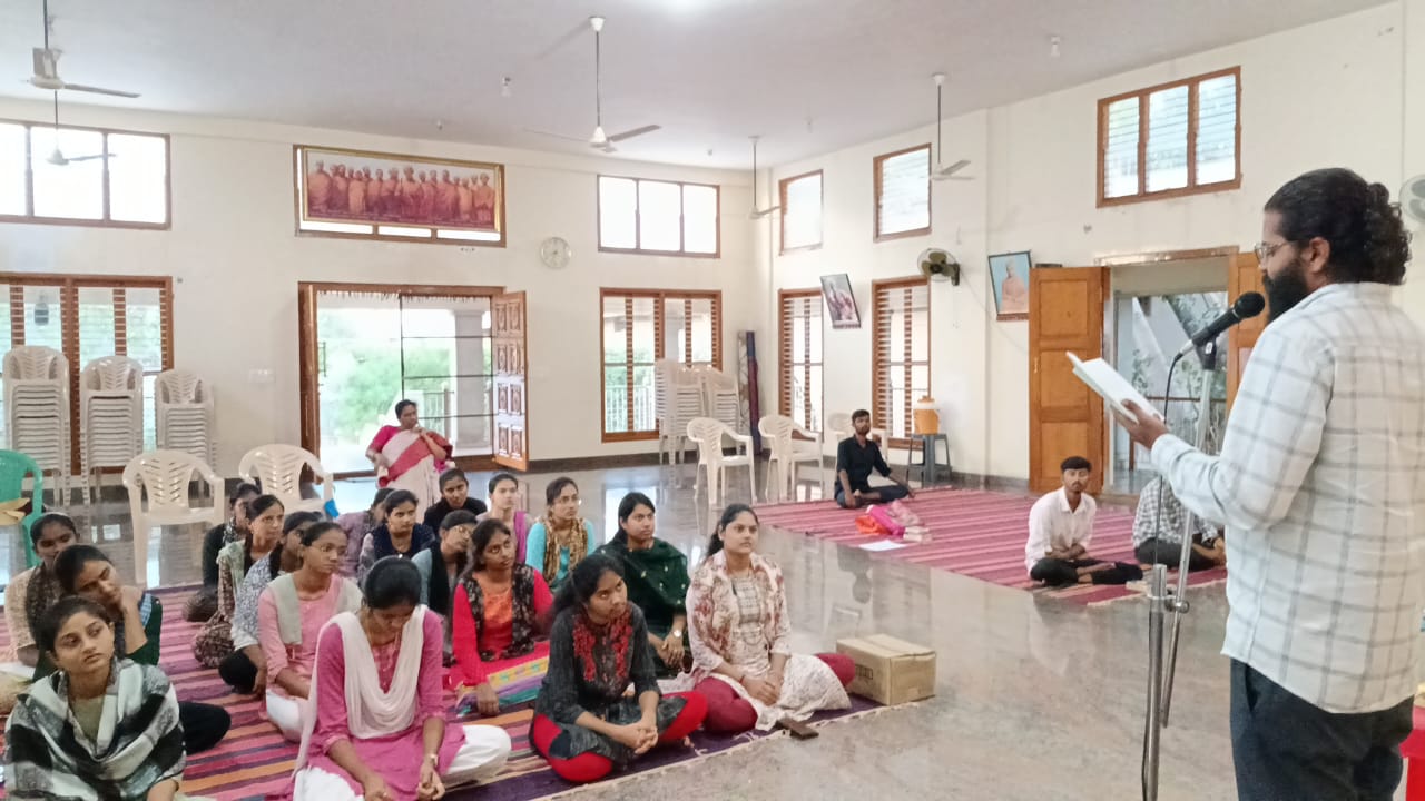 “ಶ್ರೀಶಾರದಾಶ್ರಮದಲ್ಲಿ ಯುವ ತರಗತಿ”. ಚಳ್ಳಕೆರೆ:-ನಗರದ ವಾಸವಿ ಕಾಲನಿಯ ಶ್ರೀಶಾರದಾಶ್ರಮದ ದೇವಸ್ಥಾನದಲ್ಲಿ ಯುವಕ-ಯುವತಿಯರಿಗಾಗಿ “ವ್ಯಕ್ತಿತ್ವ ನಿರ್ಮಾಣಕಾರಿ ತರಗತಿ” ಕಾರ್ಯಕ್ರಮ ನಡೆಯಿತು. ಈ ಕಾರ್ಯಕ್ರಮದ ಆರಂಭದಲ್ಲಿ ಭಜನೆಯನ್ನು ಯತೀಶ್ ಎಂ ಸಿದ್ದಾಪುರ ನಡೆಸಿಕೊಟ್ಟರೆ ಧ್ಯಾನಾಭ್ಯಾಸವನ್ನು ಆಶ್ರಮದ ಅಧ್ಯಕ್ಷರಾದ ಮಾತಾಜೀ ತ್ಯಾಗಮಯೀ ಮಾಡಿಸಿದರು. “ನನ್ನ ತಾಯಿ ಶಾರದೆ” ಎಂಬ ವಿಷಯವಾಗಿ ಸ್ವಯಂಸೇವಕರಾದ ಸಂತೋಷಕುಮಾರ್ ಅಗಸ್ತ್ಯ ಅವರು ಉಪನ್ಯಾಸ ನೀಡಿದರು. ತರಗತಿಯಲ್ಲಿ ಶಾರದಾ ಶ್ರೀನಿವಾಸ್, ಸುಧಾಮಣಿ,ಕವಿತಾ ಗುರುಮೂರ್ತಿ, ಡಾ‌.ಭೂಮಿಕ, ಚೇತನ್, ಋತಿಕ್, ಪುಷ್ಪಲತಾ, ಅಂಬಣ್ಣ ಸೇರಿದಂತೆ ವಿದ್ಯಾರ್ಥಿಗಳಿದ್ದರು.