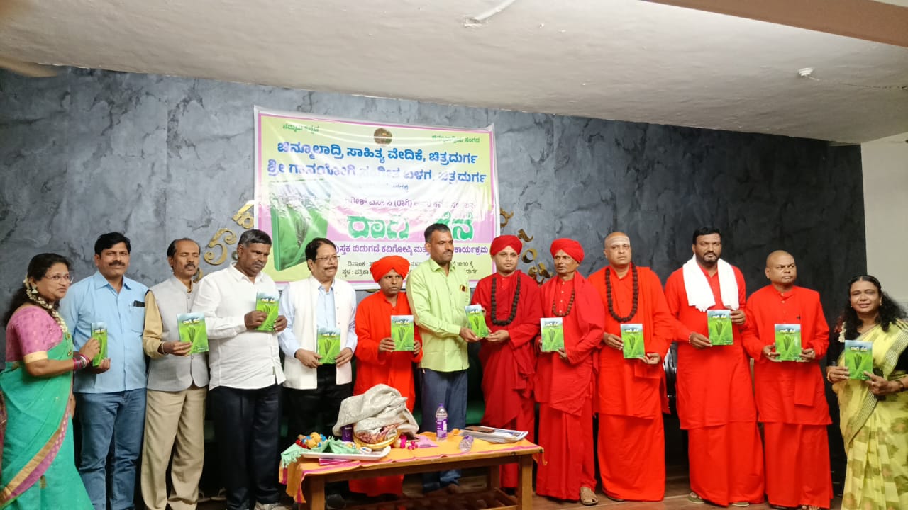 ಚಿತ್ರದುರ್ಗ:-ಒಂದು ಬರಹ ಉತ್ತಮ ಎಂದು ಪರಿಗಣಿಸಬೇಕಾದರೆ ಅದು ಬಸವಾದಿ ಶಿವಶರಣರು ತಿಳಿಸಿದ ನಡೆ-ನುಡಿಯ ಹೊಂದಾಣಿಕೆಯಿಂದ ಕೂಡಿರುವುದು ಬಹಳ ಅಗತ್ಯ ಎಂದು ಚಿತ್ರದುರ್ಗದ ಭೋವಿ ಗುರುಪೀಠದ ಪೂಜ್ಯ ಇಮ್ಮಡಿ ಸಿದ್ಧರಾಮ ಸ್ವಾಮೀಜಿ ತಿಳಿಸಿದರು. ನಗರದ ಪತ್ರಿಕಾ ಭವನದಲ್ಲಿ ಕವಿ ಗಿರೀಶ್ ಎಸ್ ಸಿ ಅವರ ಚೊಚ್ಚಲ ಕವನ ಸಂಕಲನ “ರಾಗಿ ತೆನೆ” ಪುಸ್ತಕ ಬಿಡುಗಡೆ ಹಾಗೂ ಕವಿಗೋಷ್ಠಿ ಮತ್ತು ಸಂಗೀತ ಕಾರ್ಯಕ್ರಮದ ದಿವ್ಯ ಸಾನಿಧ್ಯ ವಹಿಸಿ ಅವರು ಆಶೀರ್ವಚನ ನೀಡಿದರು. ಗಿರೀಶ್ ಅವರ “ರಾಗಿ ತೆನೆ” ಕವನ ಸಂಕಲನವು ನಡೆ-ನುಡಿ ಒಂದಾದ ಪುಸ್ತಕವಾಗಿದೆ ಎಂದು ಕೃತಿ ರಚನೆಯ ಬಗ್ಗೆ ಮೆಚ್ಚುಗೆ ವ್ಯಕ್ತಪಡಿಸಿದರು. ಪುಸ್ತಕ ಬಿಡುಗಡೆಗೊಳಿಸಿ ಮಾತನಾಡಿದ ಶಿವಮೊಗ್ಗದ ಹಿರಿಯ ಪತ್ರಕರ್ತ ಆರುಂಡಿ ಶ್ರೀನಿವಾಸಮೂರ್ತಿ ಅವರು ಕಾವ್ಯಕ್ಕೆ ಯಾವುದೇ ಕಟ್ಟುಪಾಡಿರದೆ ಅದು ಜಾತಿ-ಮತ-ಪಂಗಡಗಳನ್ನು ಮೀರಿ ರಚನೆಯಾಗಬೇಕು, ಕವಿತೆಗಳು ಅನುಭವದ ಸಾಹಿತ್ಯದಿಂದ ಮೂಡಿಬರಬೇಕು. “ರಾಗಿ ತೆನೆ” ಕವನ ಸಂಕಲನವು ಮಾನವೀಯ ಸಂಬಂಧಗಳನ್ನು ಕಟ್ಟಿ ಕೊಡುತ್ತದೆ. ಈ ಕವನದ ಸಂಕಲನದ ಶೀರ್ಷಿಕೆಯಾದ ರಾಗಿಗೆ