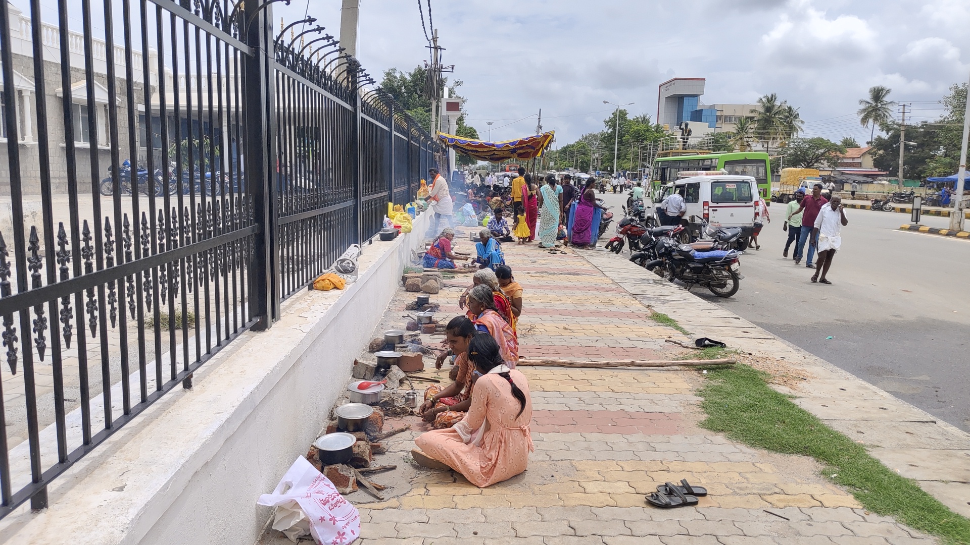 ಇನ್ನು ಜಿಲ್ಲಾಧಿಕಾರಿ ಬರವಿಕೆಗಾಗಿ ರಸ್ತೆ ಪಕ್ಕದ ಫುಟ್ ಬಾತ್ ಮೇಲೆ ಅಡಿಗೆ ತಯಾರಿಸಿದ್ದೇವೆ ಎಂದು ಧರಣಿ ನಿರತ ಮಹಿಳೆಯರು ಮೌನ ಮುರಿದಿದ್ದಾರೆ.