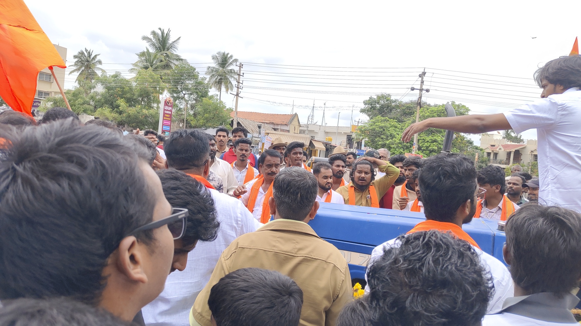 ಆದರೆ ಹೈ ಕೋರ್ಟ್ ಆದೇಶ ಪಾಲಿಸಬೇಕು, ಸರಕಾರ ಡಿಜೆಗೆ ಪರವಾನಿಗೆ ನೀಡಬೇಡಿ ಎಂಬ ಆದೇಶ ಇದೆ ಎಂದು ಪೋಲಿಸರು ಮನವೋಲಿಸಿ ಕರೆದೊಯ್ದರು ಆದರೆ ಮರು ಅಂಬೇಡ್ಕರ್ ವೃತ್ತದ ಮೂಲಕ ಪೋಲಿಸ್ ಠಾಣೆ ಸಮೀಪಿಸುತ್ತಿದ್ದಂತೆ ಯುವಕರು ಗುಂಪು ಗಣೇಶ ಉತ್ಸವ ವನ್ನು ತಡೆದು ಡಿಜೆ ಸೌಂಡ್ ಬೇಕು ಎಂದು ಘೋಷಣೆಗಳನ್ನು ಕೂಗಿ ಪ್ರತಿಭಟನೆ ನಡೆಸಿದರು.