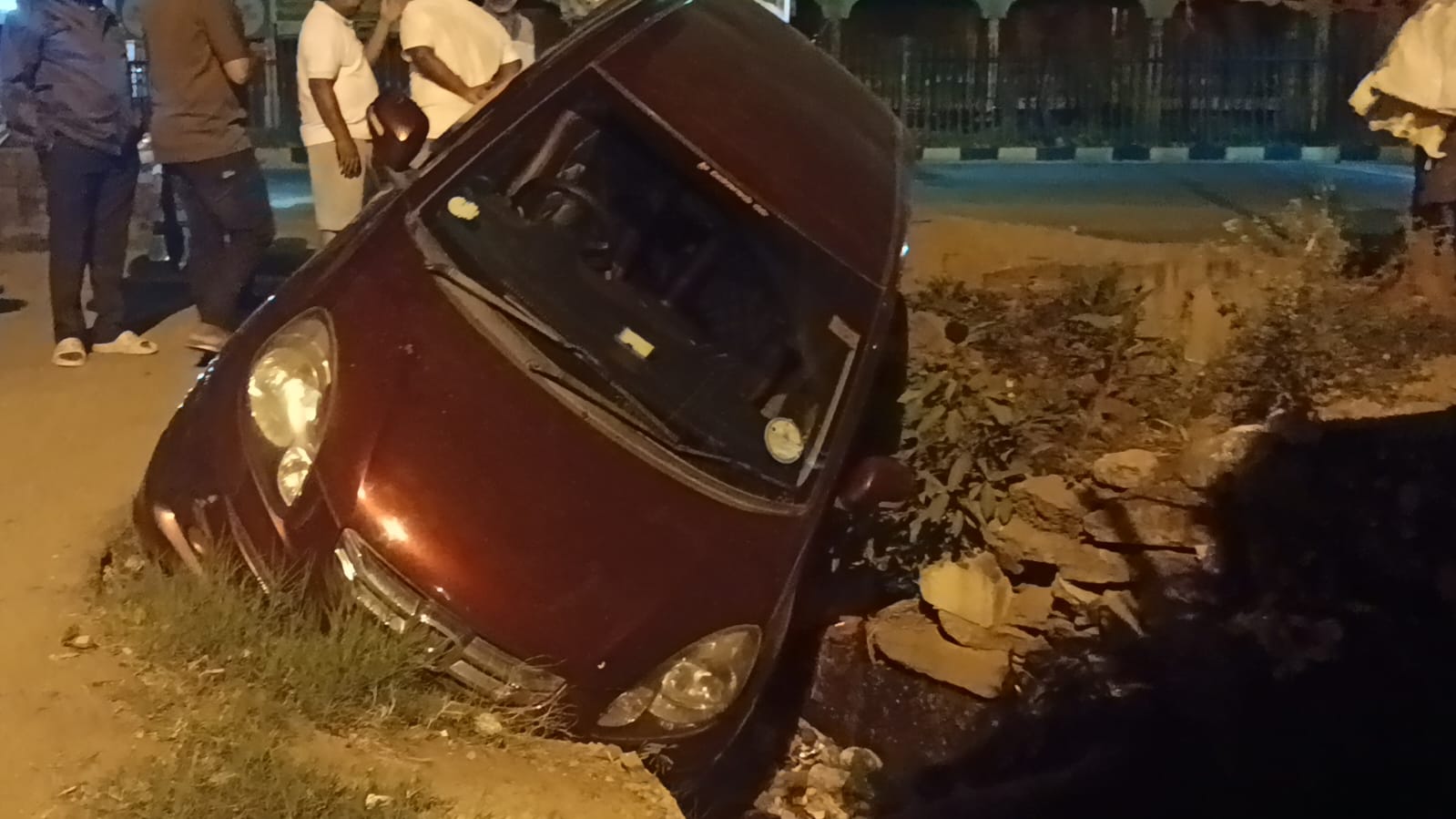 ಕಾರು ರಸ್ತೆ ಪಕ್ಕದ ಗುಂಡಿಗೆ ಬಿದ್ದು ಪ್ರಣಾಪಾಯದಿಂದ ಪಾರು.