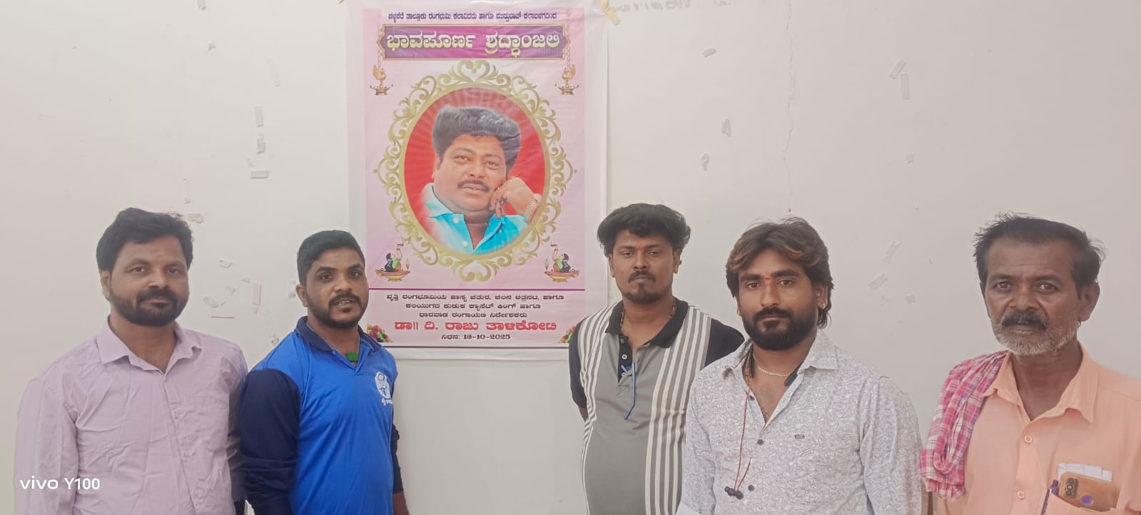 ಚಳ್ಳಕೆರೆ ಪ್ರವಾಸ ಮಂದಿರದಲ್ಲಿ ಚಳ್ಳಕೆರೆ ರಂಗಭೂಮಿ ಹಾಗೂ ಮುತ್ತುರಾಜ್ ಕಲಾಬಳಗದ ವತಿಯಿಂದ ಹೆಸರಂತ ರಂಗಭೂಮಿ ಕಲಾವಿದ ಚಲನಚಿತ್ರ ಹಾಸ್ಯ ನಟರಾದ ರಾಜು ತಾಳಿಕೋಟಿ ಅವರ ಶ್ರದ್ಧಾಂಜಲಿ ಕಾರ್ಯಕ್ರಮದಲ್ಲಿ