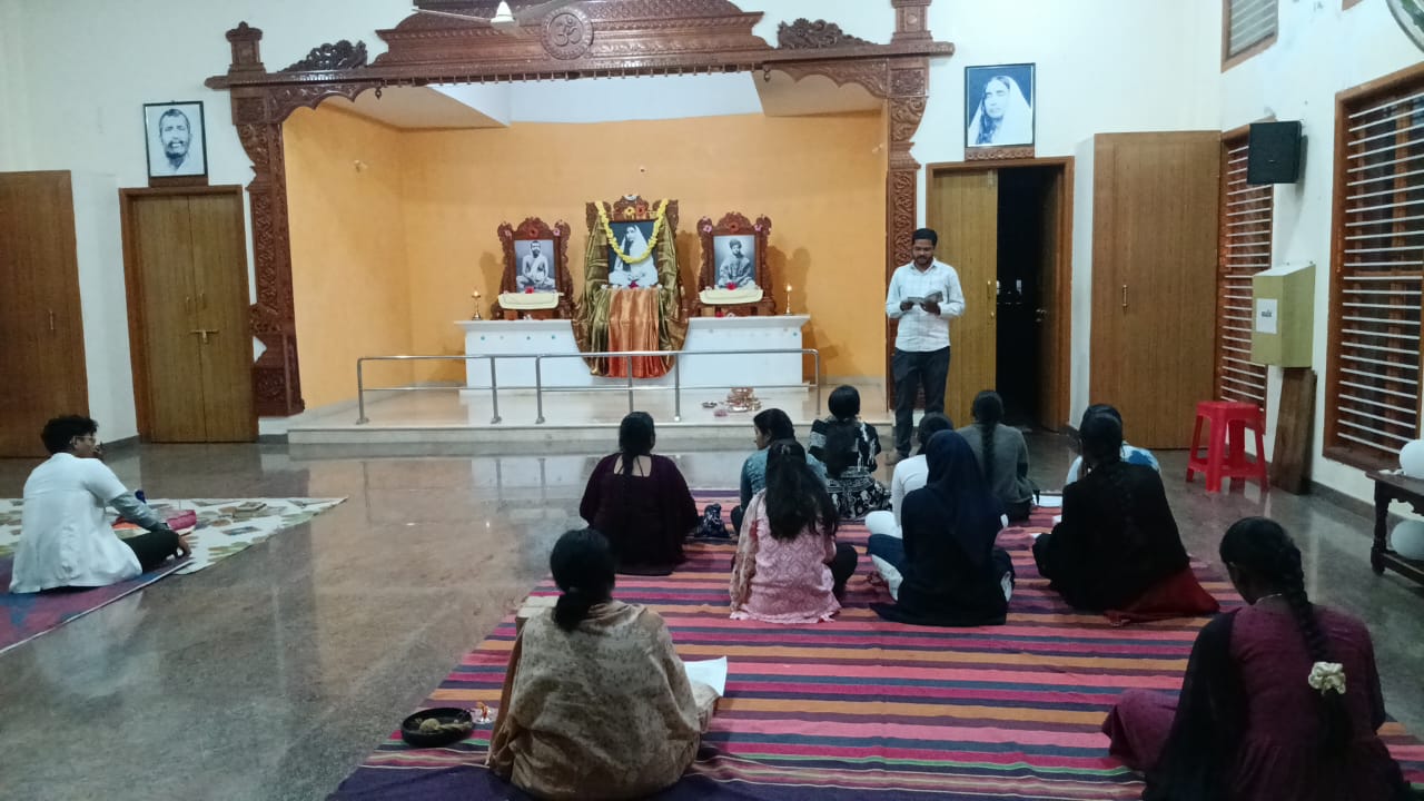 “ನಿರಂತರ ನಾಮಜಪದಿಂದ ಭಗವಂತನ ದರ್ಶನ”:- ಸಂತೋಷಕುಮಾರ್. ಚಳ್ಳಕೆರೆ:-ಶ್ರೀಮಾತೆ ಶಾರದಾದೇವಿಯವರು ತಿಳಿಸಿದಂತೆ ನಿರಂತರ ನಾಮಜಪ ಮಾಡುವುದರಿಂದ ಭಗವಂತನ ದರ್ಶನ ಸಾಧ್ಯವಾಗುತ್ತದೆ ಎಂದು ಚಳ್ಳಕೆರೆಯ ಶ್ರೀಶಾರದಾಶ್ರಮದ ಸ್ವಯಂಸೇವಕರಾದ ಸಂತೋಷ್ ಕುಮಾರ್ ತಿಳಿಸಿದರು. ನಗರದ ವಾಸವಿ ಕಾಲೋನಿಯ ಶ್ರೀಶಾರದಾಶ್ರಮದ ದೇವಸ್ಥಾನದಲ್ಲಿ ಯುವಕ-ಯುವತಿಯರಿಗಾಗಿ ಆಯೋಜಿಸಿದ್ದ ವ್ಯಕ್ತಿತ್ವ ನಿರ್ಮಾಣಕಾರಿ ತರಗತಿ ಕಾರ್ಯಕ್ರಮದಲ್ಲಿ ಪಾಲ್ಗೊಂಡ ಅವರು ಶ್ರೀಶಾರದಾದೇವಿಯವರ ಸಂದೇಶಗಳನ್ನು ಒಳಗೊಂಡ “ವಾತ್ಸಲ್ಯತೀರ್ಥ” ಪುಸ್ತಕದ ಕುರಿತಾಗಿ ಉಪನ್ಯಾಸ ನೀಡಿದರು. ಕಾರ್ಯಕ್ರಮದ ಆರಂಭದಲ್ಲಿ ಪ್ರಾರ್ಥನೆ ಮತ್ತು ಭಜನೆಯನ್ನು ಯತೀಶ್ ಎಂ ಸಿದ್ದಾಪುರ ನಡೆಸಿಕೊಟ್ಟರೆ ಪೂಜ್ಯ ಮಾತಾಜೀ ತ್ಯಾಗಮಯೀ ಅವರಿಂದ ದಿವ್ಯತ್ರಯರಿಗೆ ಮಂಗಳಾರತಿ ನಡೆಯಿತು. ತರಗತಿಯಲ್ಲಿ ವೆಂಕಟಲಕ್ಷ್ಮೀ, ಪುಷ್ಪಲತಾ, ಲೋಹಿತ್,ಚಾರ್ಮಿಶ್ರೀ ಲಲಿತಾ, ಸೃಷ್ಟಿ ಕುರುಬರ್, ಚೇತನ್,ಜಿ ಯಶೋಧಾ ಪ್ರಕಾಶ್ ಸೇರಿದಂತೆ ವಿದ್ಯಾರ್ಥಿಗಳು ಪಾಲ್ಗೊಂಡಿದ್ದರು.
