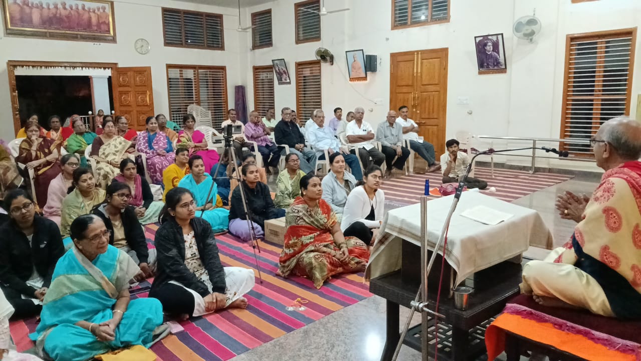 “ಪರಬ್ರಹ್ಮ ಸ್ವರೂಪವನ್ನು ವರ್ಣಿಸಲಾಗದು”:- ಪೂಜ್ಯ ವೈ ರಾಜಾರಾಮ್ ಸದ್ಗುರುಗಳು. ಚಳ್ಳಕೆರೆ:-ಪ್ರತಿಯೊಬ್ಬರ ಒಳಗೂ ನೆಲೆಸಿರುವ ಪರಬ್ರಹ್ಮ ಸ್ವರೂಪವನ್ನು ವರ್ಣಿಸಲು ಸಾಧ್ಯವಿಲ್ಲ ಎಂದು ಚಳ್ಳಕೆರೆಯ ನರಹರಿ ನಗರದ ಶ್ರೀನರಹರಿ ಸದ್ಗುರು ಆಶ್ರಮದ ಪೀಠಾಧ್ಯಕ್ಷರಾದ ಪರಮಪೂಜ್ಯ ವೈ ರಾಜಾರಾಮ್ ಸದ್ಗುರುಗಳು ತಿಳಿಸಿದರು. ನಗರದ ವಾಸವಿ ಕಾಲೋನಿಯ ಶ್ರೀಶಾರದಾಶ್ರಮದ ದೇವಸ್ಥಾನದಲ್ಲಿ ಆಯೋಜಿಸಿದ್ದ “ಕೇನ ಉಪನಿಷತ್” ಪ್ರವಚನ ಮಾಲಿಕೆ ಸತ್ಸಂಗ ಕಾರ್ಯಕ್ರಮದ ದಿವ್ಯ ಸಾನಿಧ್ಯ ವಹಿಸಿ ಅವರು ಆಶೀರ್ವಚನ ನೀಡಿದರು. ಕೇನ ಎಂಬ ಪದದಿಂದ ಇದು ಪ್ರಾರಂಭವಾಗುವುದಿಂದ ಇದಕ್ಕೆ “ಕೇನೋಪನಿಷತ್” ಎಂದು ಕರೆಯುತ್ತಾರೆ,ಇದು ಜೈಮಿನಿ ಬ್ರಾಹ್ಮಣದ ಒಂಬತ್ತನೇ ಮಂಡಲದಲ್ಲಿದೆ,ಇದು ಸಾಮವೇದದಲ್ಲಿ ಬರುವುದು. ಈ ಉಪನಿಷತ್ತಿನಲ್ಲಿ ನಾಲ್ಕು ಅಧ್ಯಾಯಗಳಿವೆ,ಇಲ್ಲಿ ಒಂದಕ್ಕೂ ಮತ್ತೊಂದಕ್ಕೂ ಪರಸ್ಪರ ಹೊಂದಾಣಿಕೆಯನ್ನು ನೋಡುತ್ತೇವೆ. ಮೊದಲ ಅಧ್ಯಾಯ ಬ್ರಹ್ಮವನ್ನು ವಿಷಯೀಕರಿಸುವುದಕ್ಕೆ ಆಗುವುದಿಲ್ಲ ಎಂದು ಹೇಳುವುದು,ಎರಡನೇ ಅಧ್ಯಾಯ ಬ್ರಹ್ಮವನ್ನು ಯಾರು ಅರಿತಿರುವರೋ ಅವರೇ ನಿಜವಾಗಿ ಇದನ್ನು ತಿಳಿದವರು ಎನ್ನುವುದು,ಮೂರನೇ ಅಧ್ಯಾಯ ಒಂದು ಸಣ್ಣ ಕಥೆಯಿಂದ ಪ್ರಾರಂಭವಾಗುವುದು, ನಾಲ್ಕನೇ ಅಧ್ಯಾಯವು ಅದರ ಸ್ವರೂಪವೇನು ಎಂಬುದನ್ನು ವಿವರಿಸುವುದು ಎಂದು ಅದರ ಒಳಾರ್ಥವನ್ನು ಸವಿವರವಾಗಿ ಉದಾಹರಣೆಗಳ ಮೂಲಕ ಕಟ್ಟಿಕೊಟ್ಟರು. ಈ ಸತ್ಸಂಗದ ಆರಂಭದಲ್ಲಿ ನವಲಗುಂದದ ಶ್ರೀಶಾರದೇಶ್ವರಿ ಆಶ್ರಮದ ಅಧ್ಯಕ್ಷರಾದ ಪೂಜ್ಯ ಮಾತಾಜೀ ಅನನ್ಯಮಯೀ ಮತ್ತು ಶ್ರೀಶಾರದಾಶ್ರಮದ ಸದ್ಭಕ್ತರಿಂದ ವಿಶೇಷ ಭಜನೆ ನಡೆಯಿತು. ಸತ್ಸಂಗದ ಅಧ್ಯಕ್ಷತೆಯನ್ನು ಆಶ್ರಮದ ಅಧ್ಯಕ್ಷರಾದ ಪೂಜ್ಯ ಮಾತಾಜೀ ತ್ಯಾಗಮಯೀ ಅವರು ವಹಿಸಿದ್ದರು. ಕಾರ್ಯಕ್ರಮದ ಸ್ವಾಗತ-ಪರಿಚಯವನ್ನು ವೆಂಕಟಲಕ್ಷ್ಮೀ ಮಾಡಿದರೆ ವಂದನಾರ್ಪಣೆಯನ್ನು ಯತೀಶ್ ಎಂ ಸಿದ್ದಾಪುರ ನೆರವೇರಿಸಿದರು. ಸತ್ಸಂಗದಲ್ಲಿ ಎಚ್, ಲಕ್ಷ್ಮೀದೇವಮ್ಮ , ಎಂ ಗೀತಾ ನಾಗರಾಜ್, ಗೀತಾ ವೆಂಕಟೇಶರೆಡ್ಡಿ,ರಾಧಾ ಪದ್ಮನಾಭ, ಗೀತಾ ಭಕ್ತವತ್ಸಲ, ಸುಶೀಲಮ್ಮ ಅಯ್ಯಪ್ಪ, ಪ್ರೇಮಲೀಲಾ,ಪಿ.ಎಸ್.ಮಾಣಿಕ್ಯ ಸತ್ಯನಾರಾಯಣ, ವೀರಮ್ಮ , ರಶ್ಮಿ ರಮೇಶ್, ವಿಜಯಲಕ್ಷ್ಮೀ,ಉಷಾ ಶ್ರೀನಿವಾಸ್,ಗಂಗಾಧರಶೆಟ್ಟಿ, ಸರಸ್ವತಿ ಪಾಂಡು,ವಾಸವಿ, ನಳಿನ,ಲಕ್ಷ್ಮೀ,ನಳಿನಿ ಹರಿಕೃಷ್ಣ,ಅಂಬಿಕಾ ಪರಮೇಶ್ವರ್, ಪುಷ್ಪಲತಾ,ಸಿ.ಎಸ್.ಭಾರತಿ, ರಾಮಚಂದ್ರಪ್ಪ, ಮಲ್ಲಿಕಾರ್ಜುನಪ್ಪ, ಜಿ ಯಶೋಧಾ ಪ್ರಕಾಶ್, ಕವಿತಾ,ಸಂಜನಾ, ಋತಿಕ್, ಸಂತೋಷ್ , ಡಾ.ಭೂಮಿಕಾ ಸೇರಿದಂತೆ ಸಾಕಷ್ಟು ಸಂಖ್ಯೆಯ ಸದ್ಭಕ್ತರಿದ್ದರು.