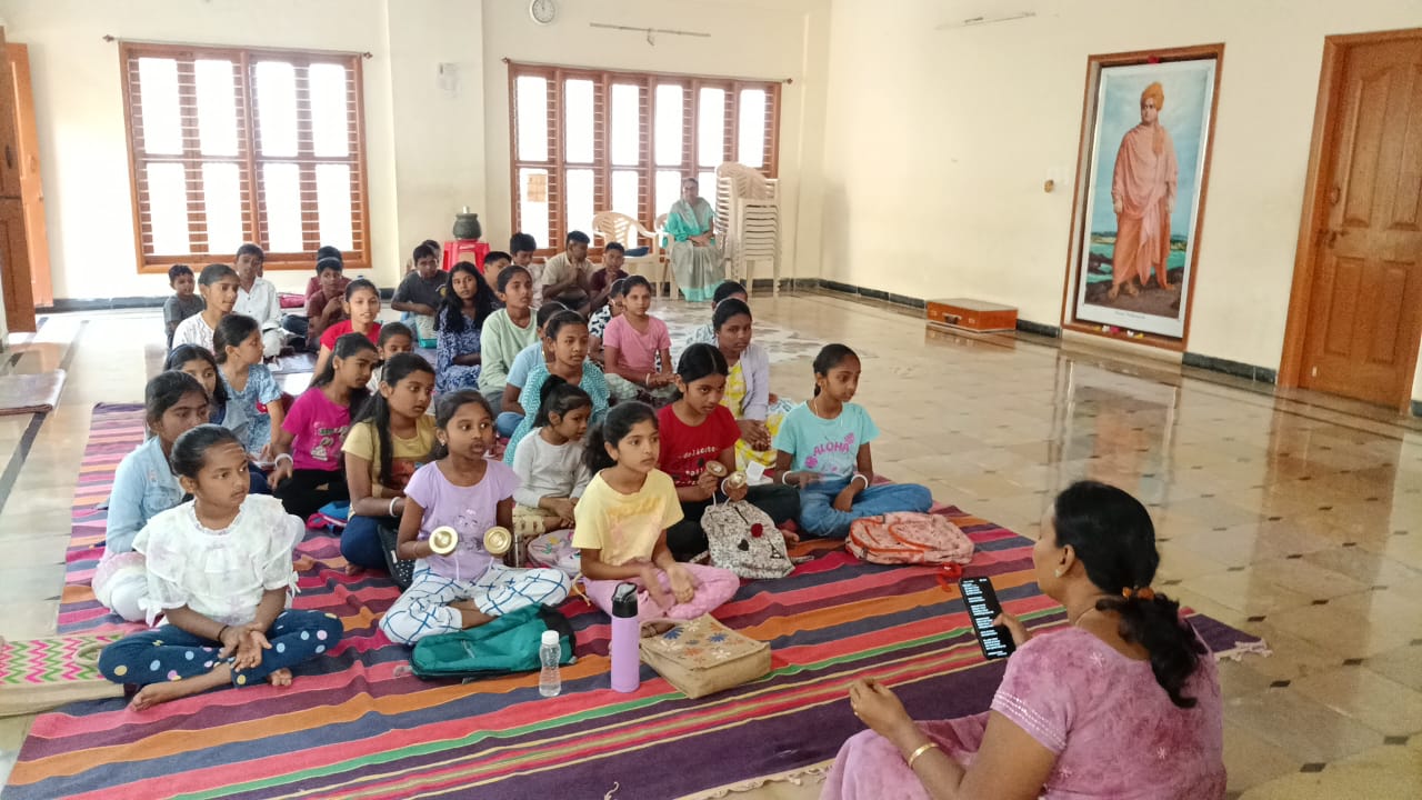 “ಮಕ್ಕಳಿಂದ ಸ್ವಾಮಿ ವಿವೇಕಾನಂದರ ಶಕ್ತಿಮಂತ್ರ ಪಠಣ” ಚಳ್ಳಕೆರೆ:-ನಗರದ ವಾಸವಿ ಕಾಲೋನಿಯ ಶ್ರೀಶಾರದಾಶ್ರಮದಲ್ಲಿ ಮಕ್ಕಳಿಗಾಗಿ ಆಯೋಜಿಸಿದ್ದ “ವಿವೇಕ ವಿಹಾರ ವಿದ್ಯಾರ್ಥಿ ಶಿಬಿರ” ಕಾರ್ಯಕ್ರಮದ ಆರಂಭದಲ್ಲಿ ಯತೀಶ್ ಎಂ ಸಿದ್ದಾಪುರ ಅವರ ನೇತೃತ್ವದಲ್ಲಿ ಮಕ್ಕಳಿಂದ ಓಂಕಾರ, ದಿವ್ಯತ್ರಯರ ಪ್ರಣಾಮಮಂತ್ರ, ಶ್ರೀರಾಮಕೃಷ್ಣರ ನಾಮಸ್ಮರಣೆ, ಸ್ವಾಮಿ ವಿವೇಕಾನಂದರ ಶಕ್ತಿಮಂತ್ರ, ಸ್ವದೇಶ ಮಂತ್ರ ಮತ್ತು ಚೈತನ್ಯದಾಯಕ ನುಡಿಗಳ ಪಠಣ, ರಶ್ಮಿ ವಿನಯ್ ಅವರಿಂದ ಗೋವಿಂದನ ಭಜನಾ ಕಾರ್ಯಕ್ರಮ ನಡೆಯಿತು. ಕಾರ್ಯಕ್ರಮದ ಕೊನೆಯಲ್ಲಿ ಮಕ್ಕಳಿಗೆ ವಿವಿಧ ಆಟಗಳನ್ನು ಸಂತೋಷ್ ಕುಮಾರ್ ಆಡಿಸಿದರು. ಶಿಬಿರದಲ್ಲಿ ಸುಧಾಮಣಿ,ಬಿಂದು, ಸಂಜನಾ,ಹಂಸ, ಮಹಾಲಕ್ಷ್ಮೀ, ಹರ್ಷಿತಾ, ಯಶಸ್ವಿ,ಲಕ್ಷ್ಮೀ,ವಿವಿಕ್ತ, ವಿಷ್ಣು,ಸಾಯಿ ಸಮರ್ಥ್, ಶ್ರೇಯಸ್ಸು,ವಿನತಿ, ಪ್ರಣಾಮ್ಯ, ನಮ್ರತಾ, ಜಶ್ವಿತಾ,ಕೋಮಲಾಸಿರಿ, ವೈಷ್ಣವಿ,ಚರಣ್ಯ, ಗಾಯನಾ, ಶ್ಯಾಮ್,ಮನಸಿರಿ, ಶ್ರೀನಿಹಾಂತ್ ಸೇರಿದಂತೆ ಸಾಕಷ್ಟು ಸಂಖ್ಯೆಯ ಮಕ್ಕಳು ಪಾಲ್ಗೊಂಡಿದ್ದರು.