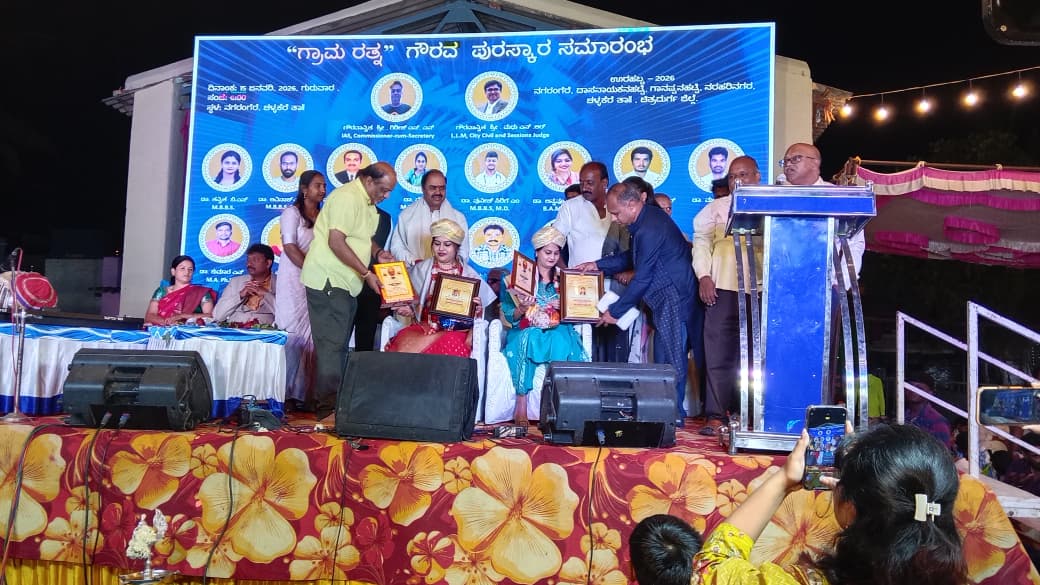 ಚಳ್ಳಕೆರೆ ತಾಲ್ಲೂಕಿನ ನಗರಂಗೆರೆಯಲ್ಲಿ ಶ್ರೀ ಮಾರಿಕಾಂಬಾ ಜಾತ್ರಾ ಮಹತ್ಸೋವದಲ್ಲಿ ‘ಗ್ರಾಮ ರತ್ನ” ಗೌರವ ಪುರಸ್ಕಾರ ಸಮಾರಂಭವನ್ನು