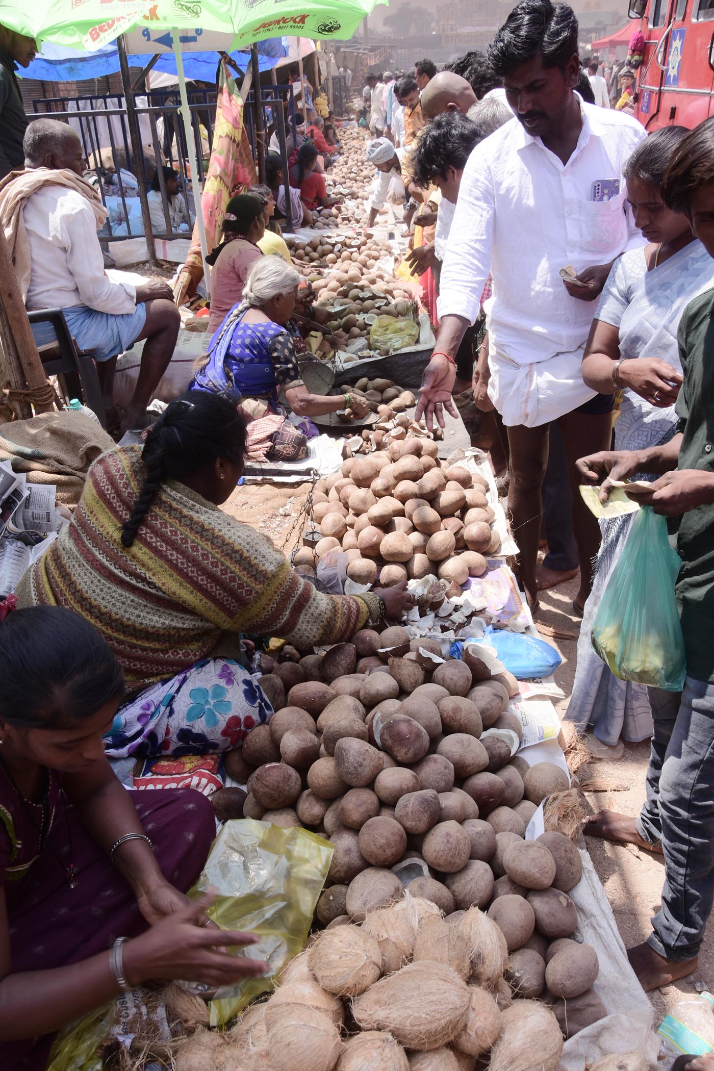 ಭಕ್ತರು ಸರತಿ ಸಾಲಿನಲ್ಲಿ ನಿಂತು ದೇವರ ದರ್ಶನ ಪಡೆದರು.